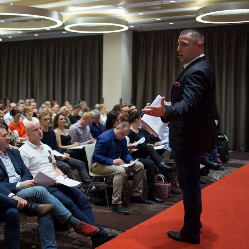 Trener wystąpień publicznych i autoprezentacji oraz przełamywania wszystkich barier nie tylko w relacji jeden do jeden, ale również jakże ważnych wystąpieniach na scenie przed większą publiką oraz przed kamerą.